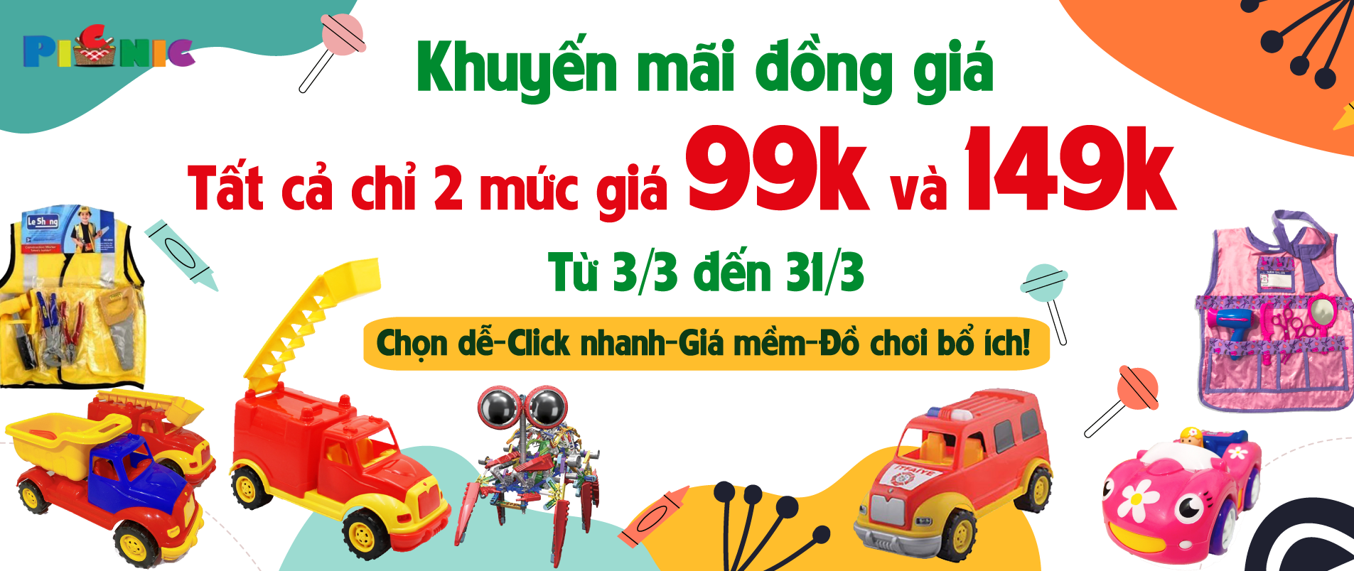 Picnictoy hân hạnh mang đến cho các bé niềm vui lớn đầu tháng 3 này: Lễ hội đồng giá 99.000 đồng và 149.000 đồng/món.